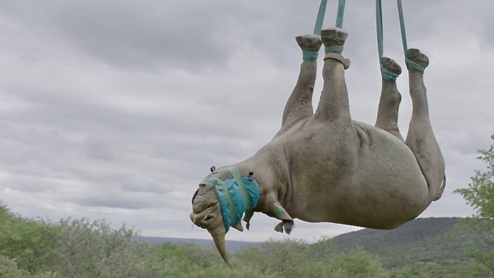 From the documentary "Terra" by Yann Arthus-Bertrand and Michael Pitiot. A Rhinoceros being relocated to a safe area as being seen in the documentary.