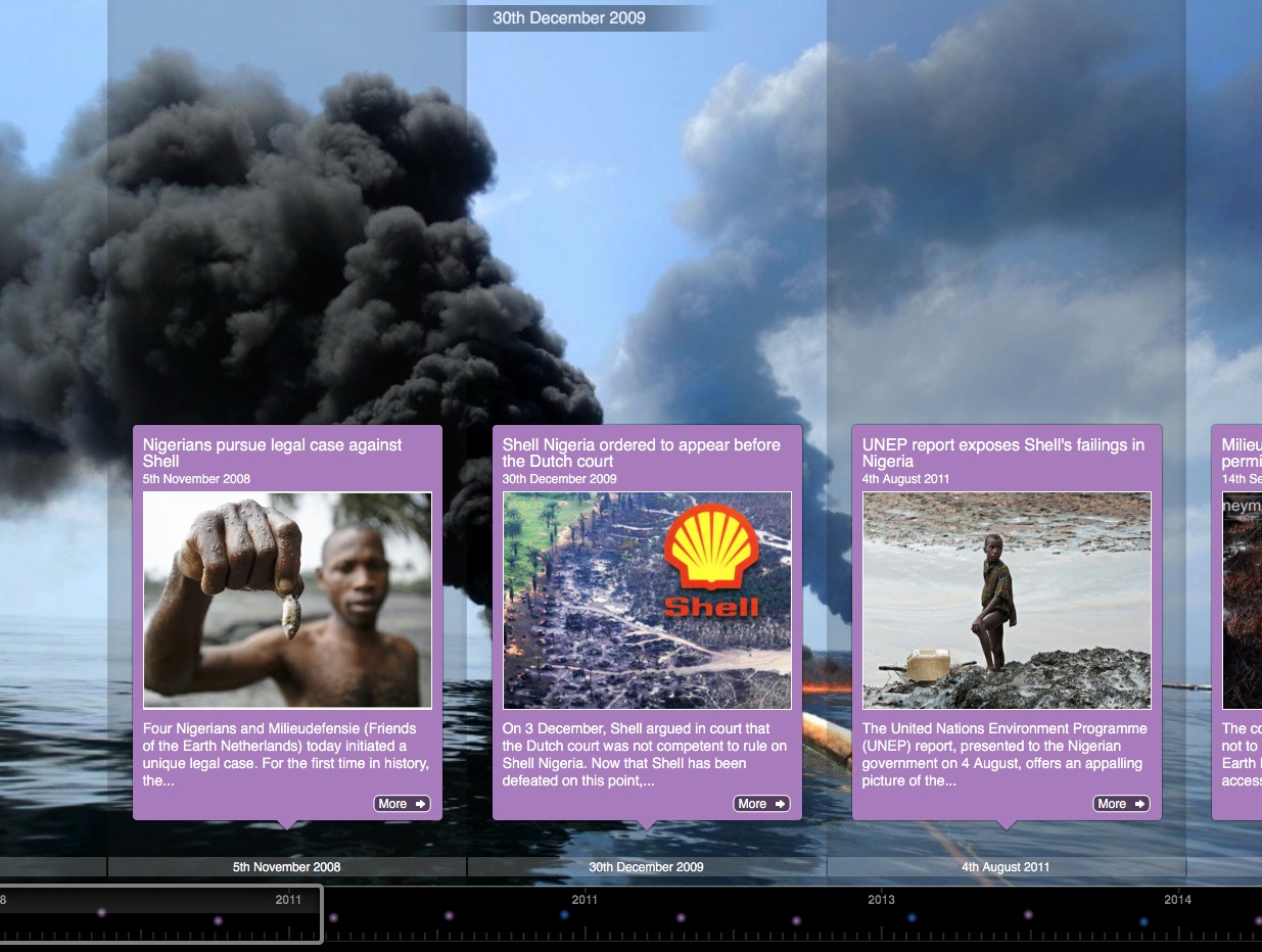 Shell has been targeted on a large scale, and not only for its misdeeds in the Niger Delta. A study by Amnesty International has reviewed Shell’s role in the murder of Ken Saro-Wiwa as well as its role in assisting the atrocities and mass-killings against Ogoni villages at the same time and aims to reopen this case in the U.K.. Following the path of other prosecutors, who hold big energy companies liable for their contribution to the damages of climate change, the Dutch environmental organization Milieudefensie, is suing Shell for contributing to approximately 2 percent to global warming and for having been informed about the consequences of fossil energies to our world's climate for more than 20 years; the intention is to call Shell to a halt of any further exploitation of fossil energy.