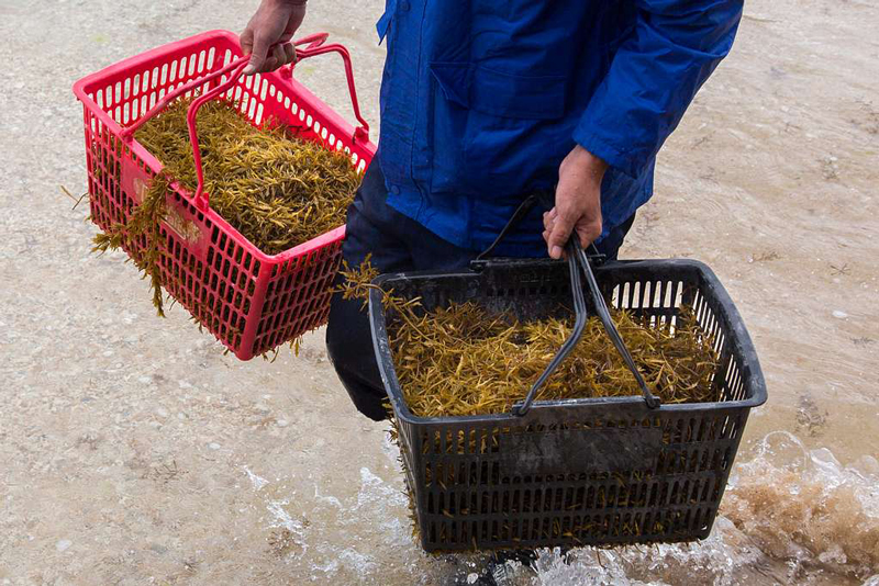 © Lance Gomez. A local resident carries baskets full of seaweed.
